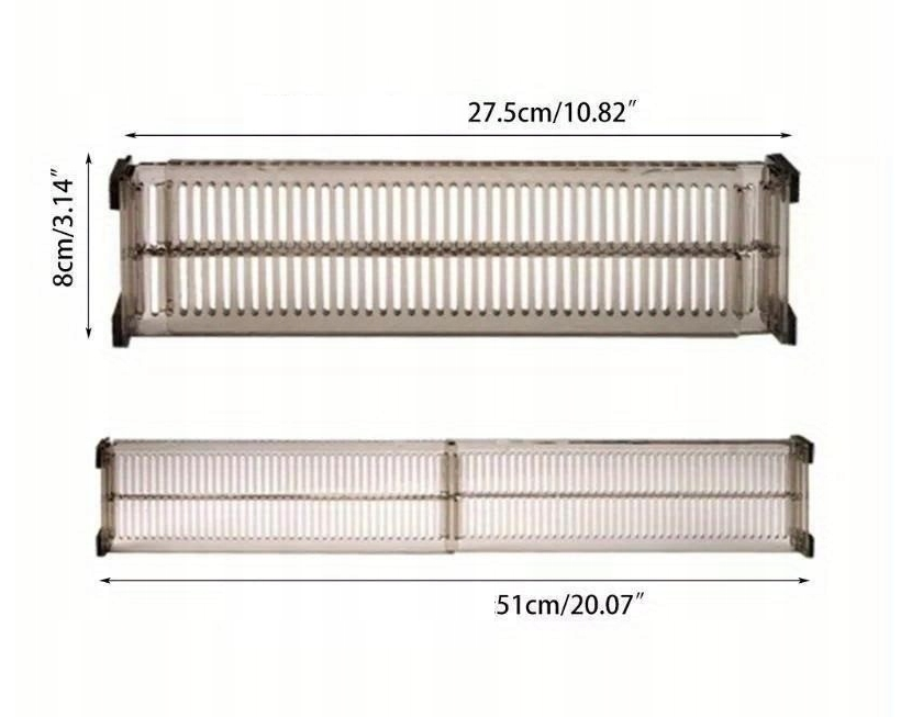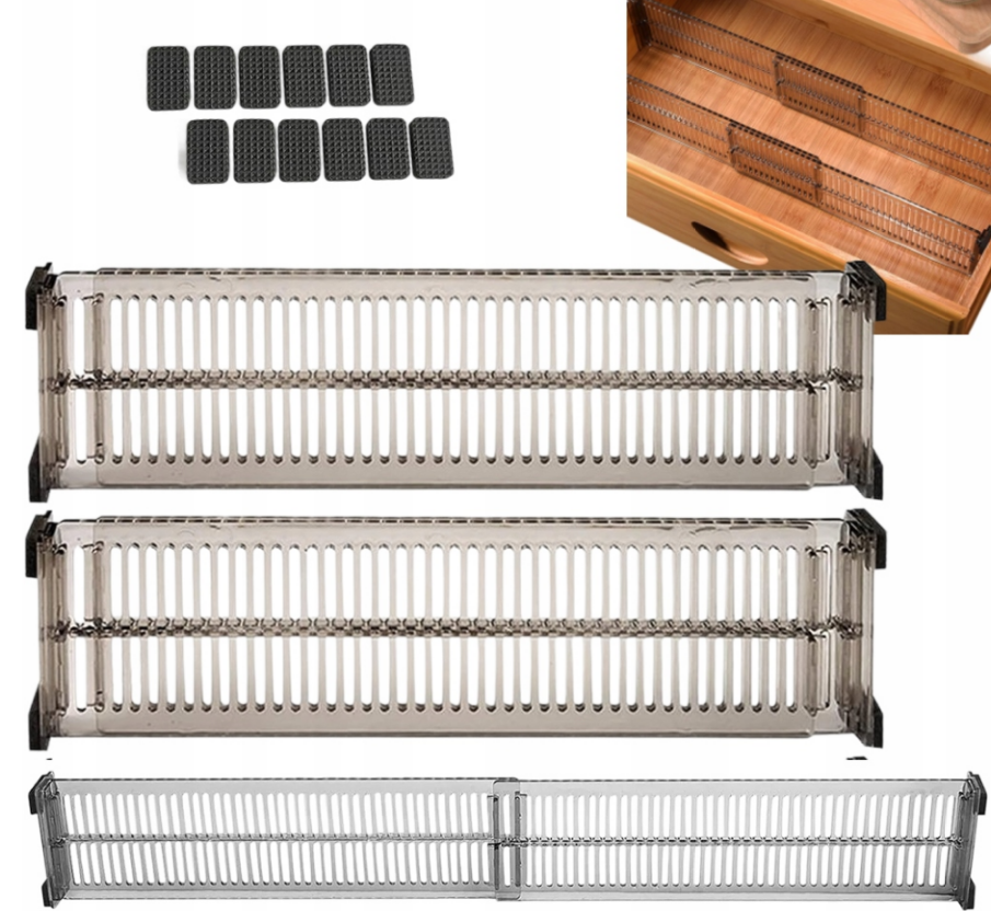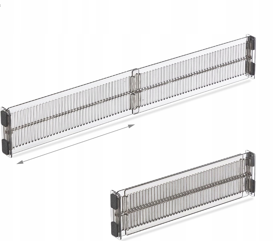 - Rozszerzalna konstrukcja zapewniająca stabilne dopasowanie do szuflady i zapobiegająca przesuwaniu