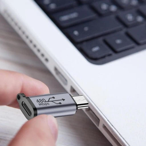 Ultracienka konstrukcja adaptera, mniejsza niż paznokieć, sprawia, że jest niezwykle kompaktowy. Wykonany z aluminium, nie tylko zapewnia trwałość, ale także skutecznie rozprasza ciepło, co sprawia, że jest odporny na zużycie i odciski palców. Adapter umożliwia łatwe ładowanie i transfer danych na różnych urządzeniach, takich jak smartfony, tablety, aparaty fotograficzne czy konsole do gier.