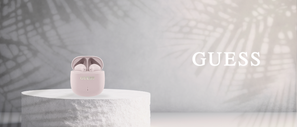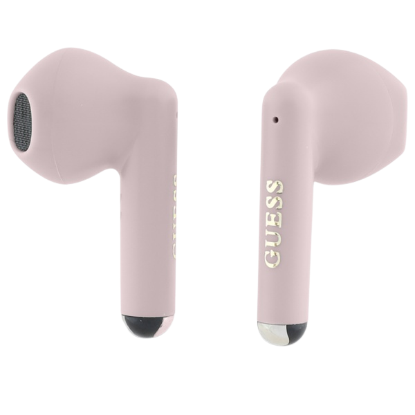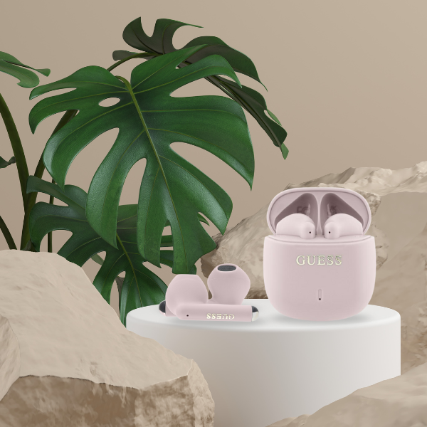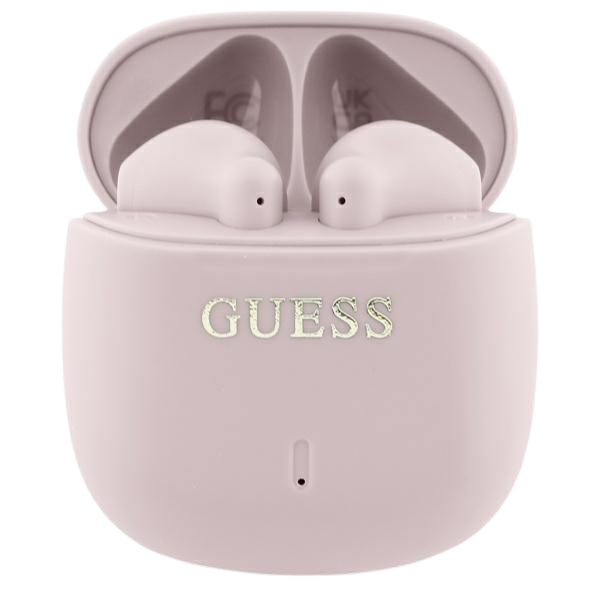 Różowy kolor nadaje słuchawkom wyjątkowego i minimalistycznego wyglądu. Metaliczne logo marki Guess na obudowie dodaje im luksusowego akcentu.