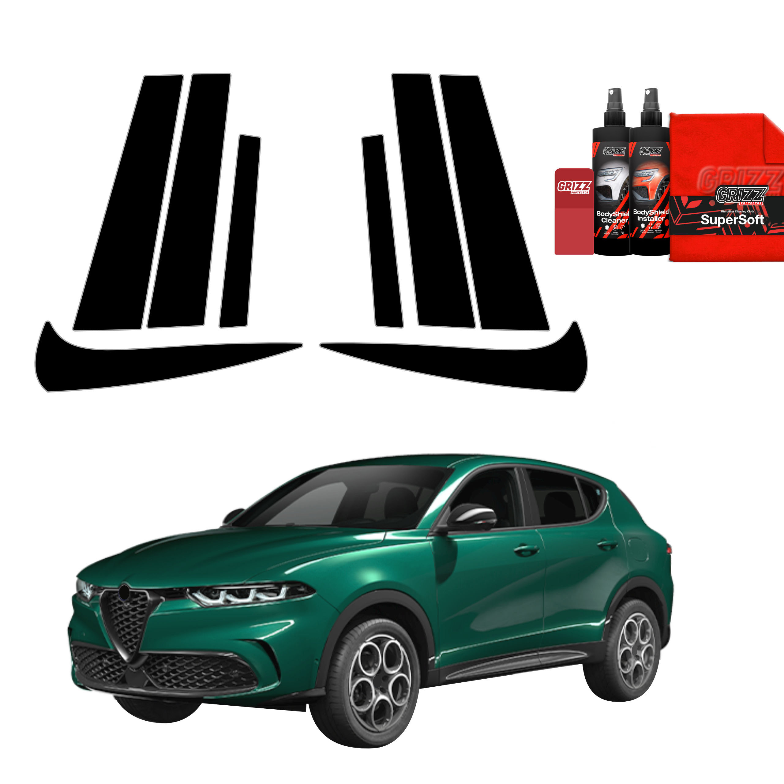 Czarna folia na słupki GrizzGlass BodyShield do Alfa Romeo Tonale (2022-2025) [8w1]