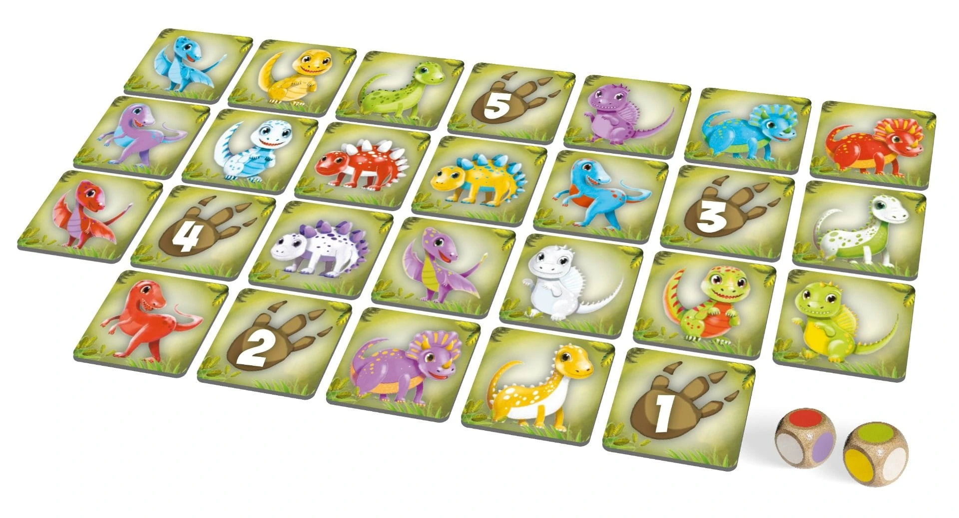Zasady gry: na stole rozkłada się 21 kafelków przedstawiających różnokolorowe dinozaury. Jeden z graczy rzuca dwiema kostkami, na których ściankach widnieją różne kolory. Zadaniem wszystkich uczestników jest jak najszybsze odnalezienie i złapanie kafelka dinozaura w kolorach wskazanych przez kostki.