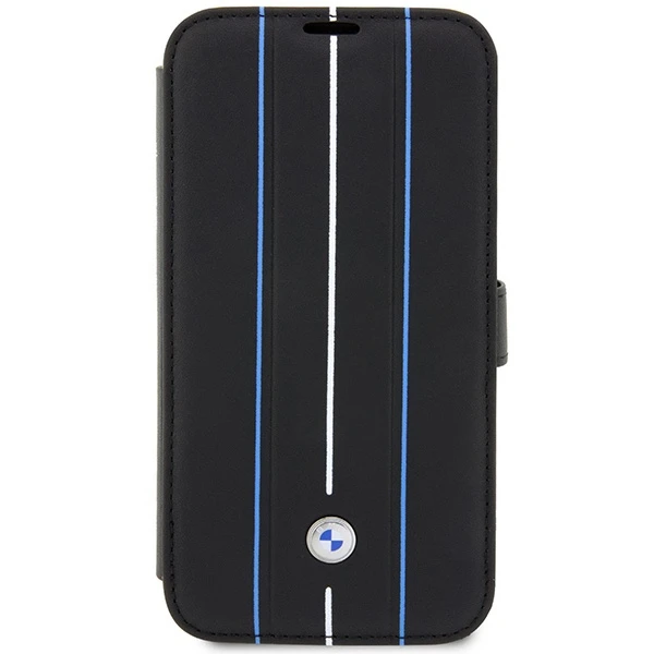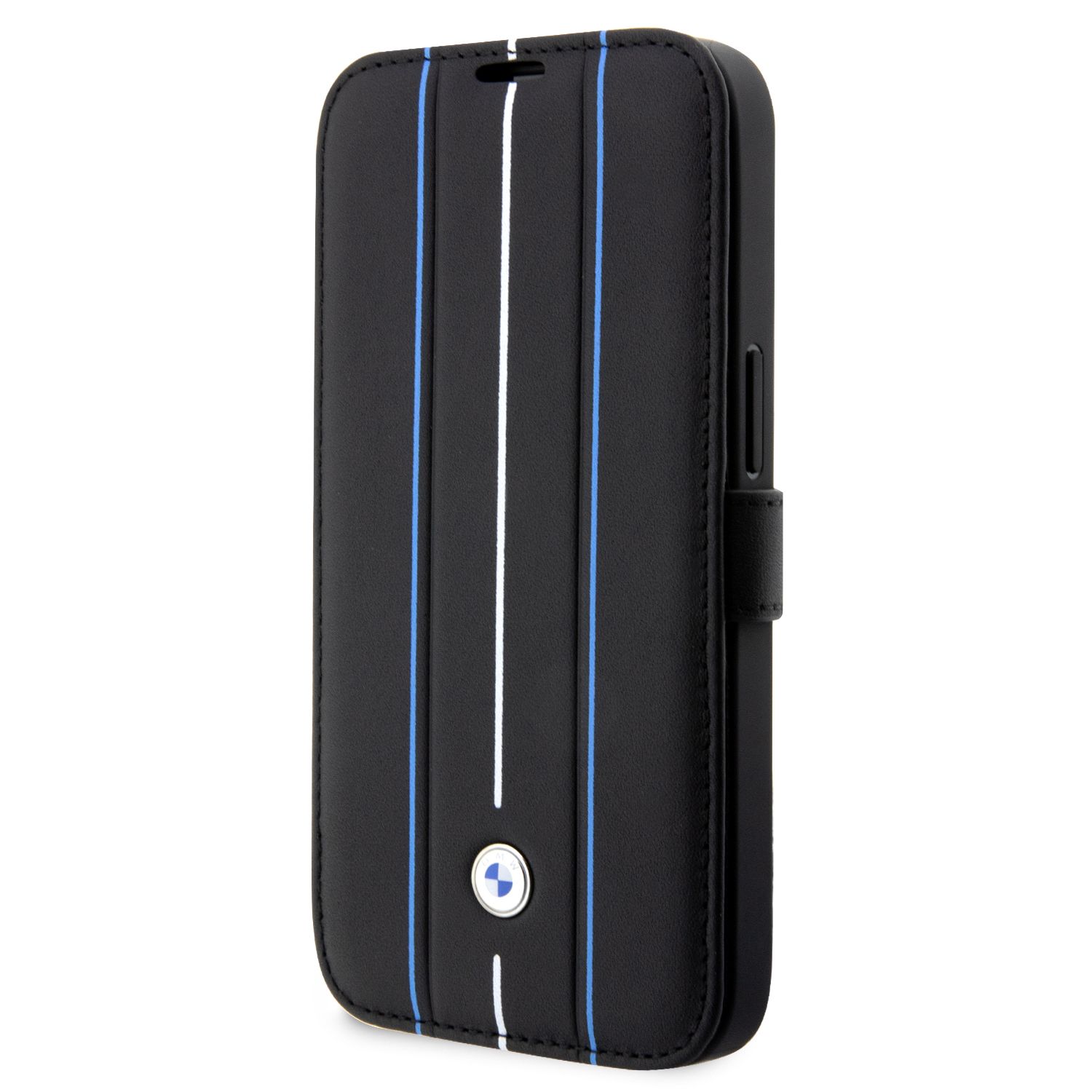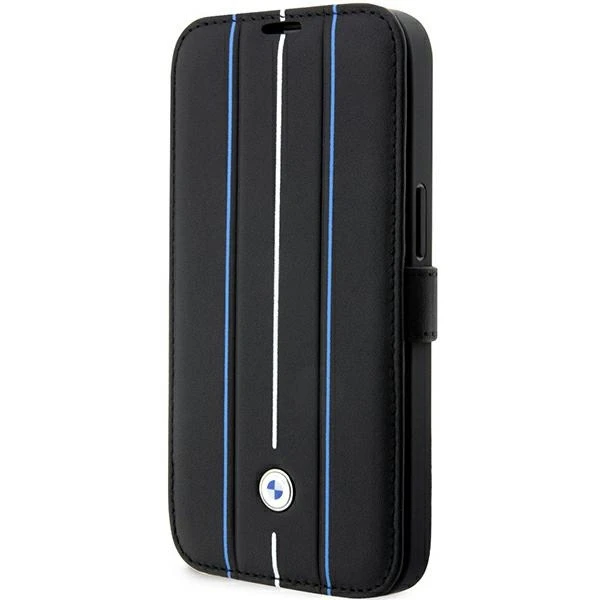 Etui BMW BMBKP14L22RVSK Apple iPhone 14 Pro czarny/black bookcase Leather Stamp Blue Lines