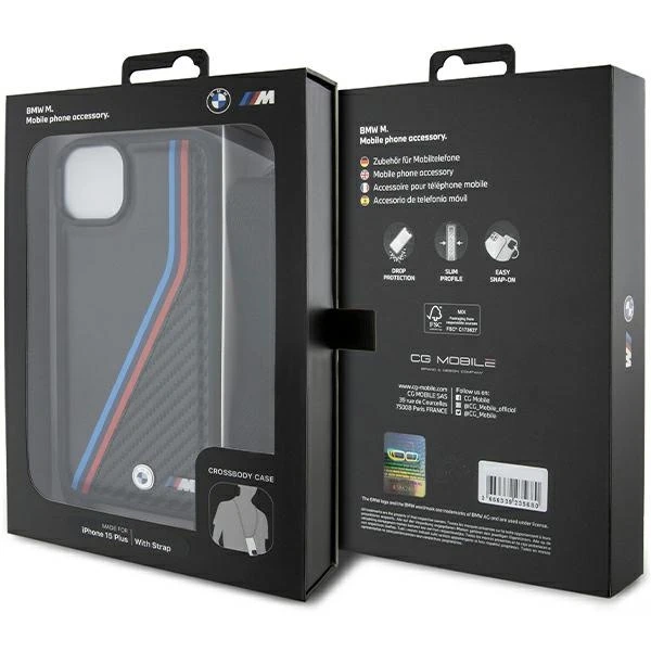 Etui BMW BMHCP15S23PSVTK Apple iPhone 15 / 14 / 13 hardcase M Edition Carbon Tricolor Lines & Strap czarny/black