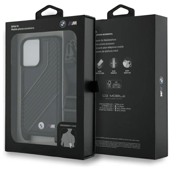 Etui BMW BMHCP16M23PSCCK Apple iPhone 16 Plus hardcase M Edition Carbon Stripe & Strap czarny/black