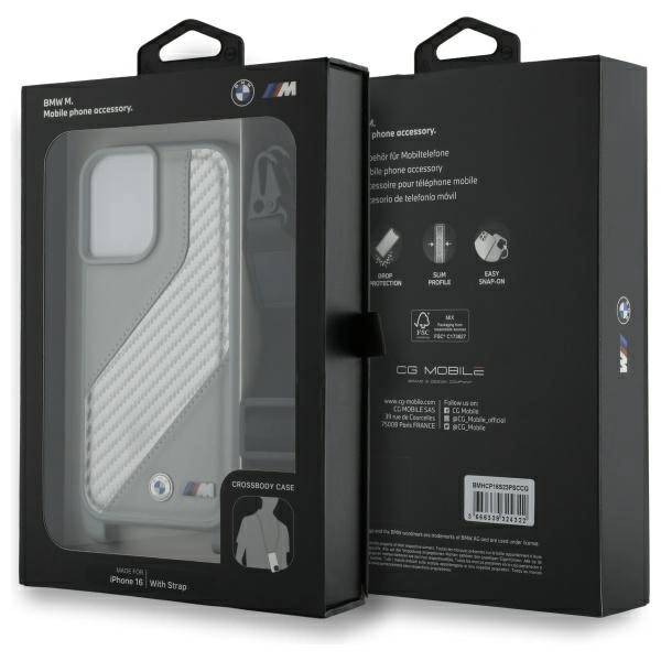Etui BMW BMHCP16S23PSCCG Apple iPhone 16 hardcase M Edition Carbon Stripe & Strap szary/grey