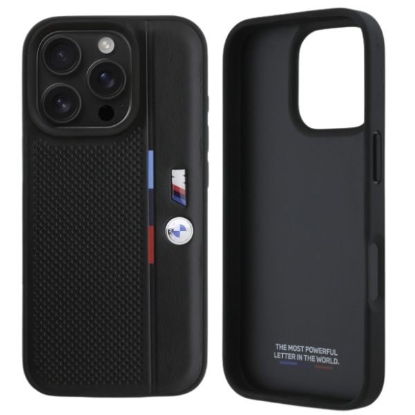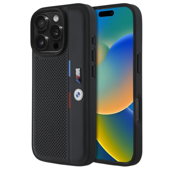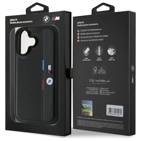 Etui BMW BMHCP16S23PUPVK Apple iPhone 16 hardcase M Perforated Tricolor Detail Line czarny/black