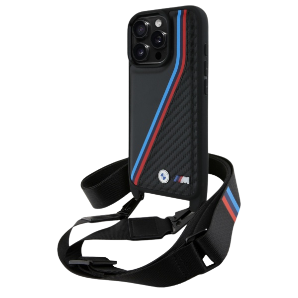 Etui BMW BMHCP16X23PSVTK Apple iPhone 16 Pro Max hardcase M Edition Carbon Tricolor Lines & Strap czarny/black