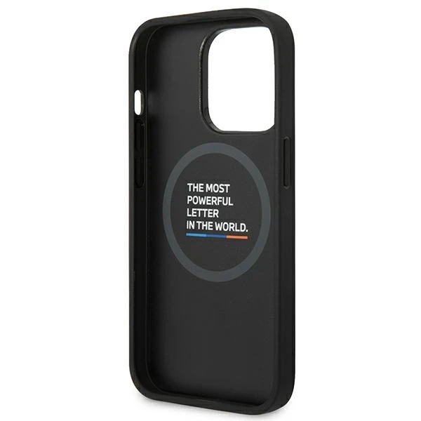 Etui BMW BMHMP14L22PTDK Apple iPhone 14 Pro czarny/black Leather Stamp Tricolor Magsafe
