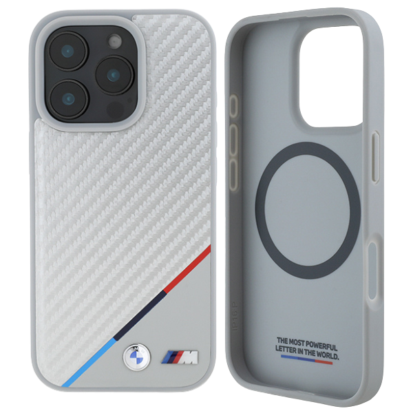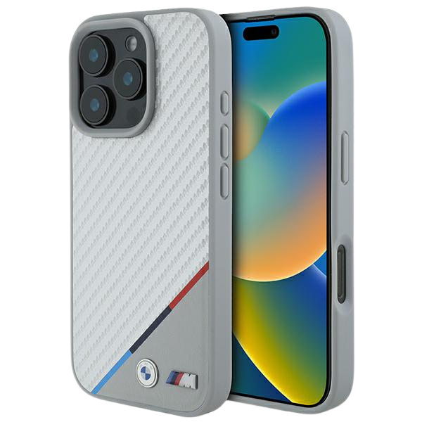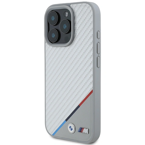 Etui BMW BMHMP16L23PUDTS Apple iPhone 16 Pro hardcase M Carbon Tricolor Line MagSafe szary/grey