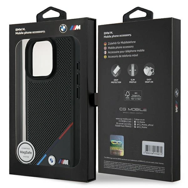 Etui BMW BMHMP16L23PUPDK Apple iPhone 16 Pro hardcase M Perforated Tricolor Line MagSafe czarny/black
