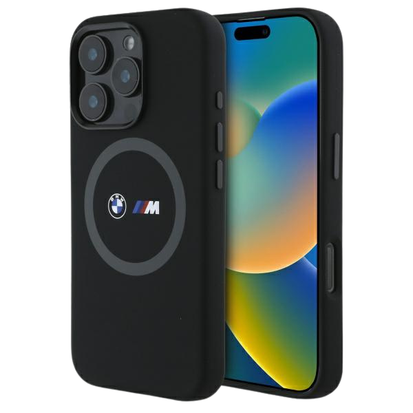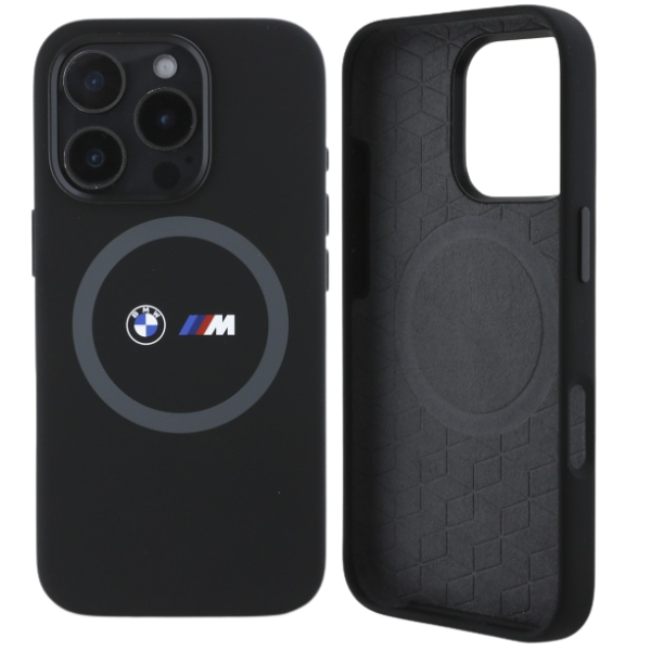 Etui BMW BMHMP16S23SROK Apple iPhone 16 hardcase M Silicone Printed Ring MagSafe czarny/black