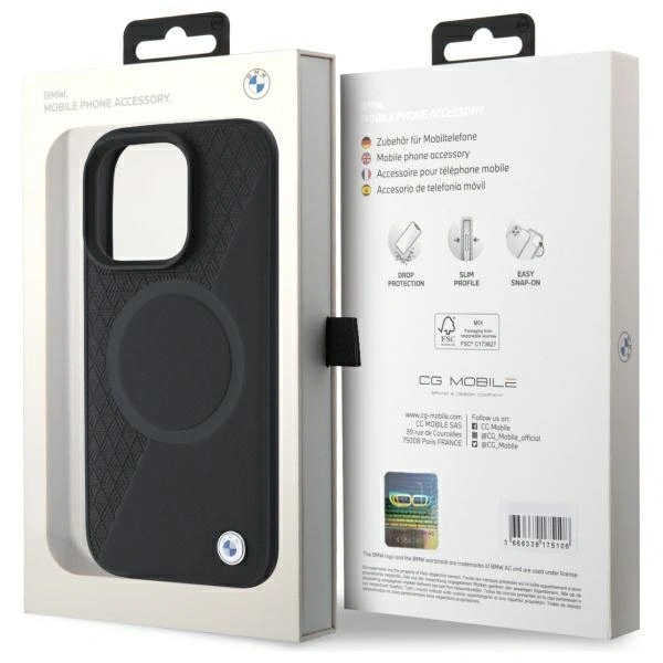 Etui BMW BMHMP16X23RTPK Apple iPhone 16 Pro Max hardcase Sign Leather Half Textured And Circle MagSafe czarny/black
