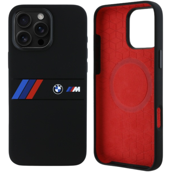 Etui BMW BMHMP16X23SAXK Apple iPhone 16 Pro Max hardcase Silicone Middle Stripe MagSafe czarny/black