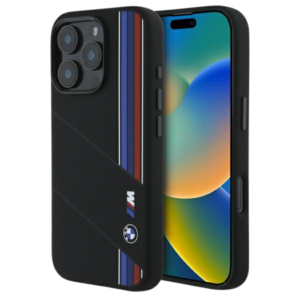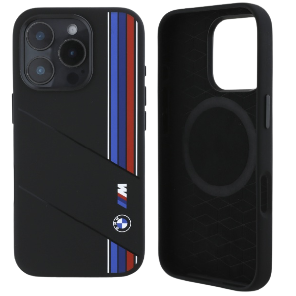 Etui BMW BMHMP16X23SCUK Apple iPhone 16 Pro Max hardcase Silicone Cut Tricolor Lines MagSafe czarny/black