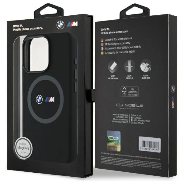 Etui BMW BMHMP16X23SROK Apple iPhone 16 Pro Max hardcase M Silicone Printed Ring MagSafe czarny/black