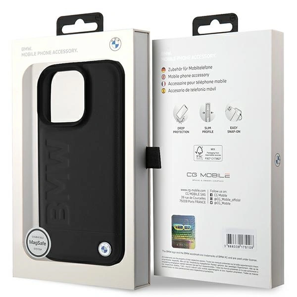Etui BMW BMHMP16XSLLBK Apple iPhone 16 Pro Max hardcase Leather Hot Stamp MagSafe czarny/black
