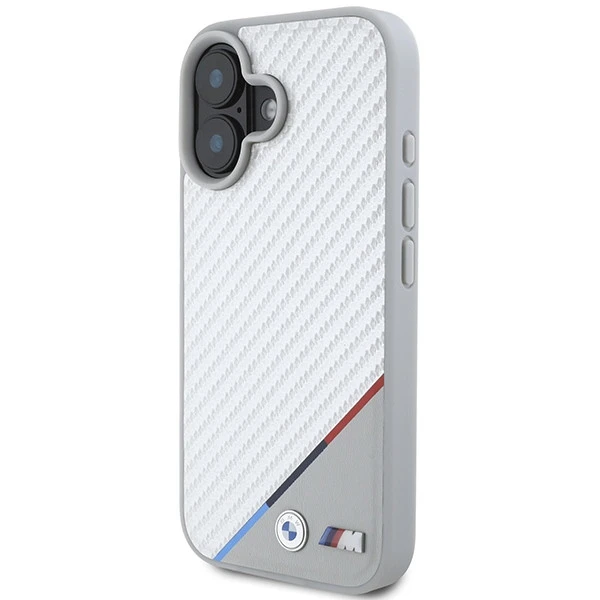 Etui BMW do Apple iPhone 16 hardcase M Carbon Tricolor Line MagSafe szary