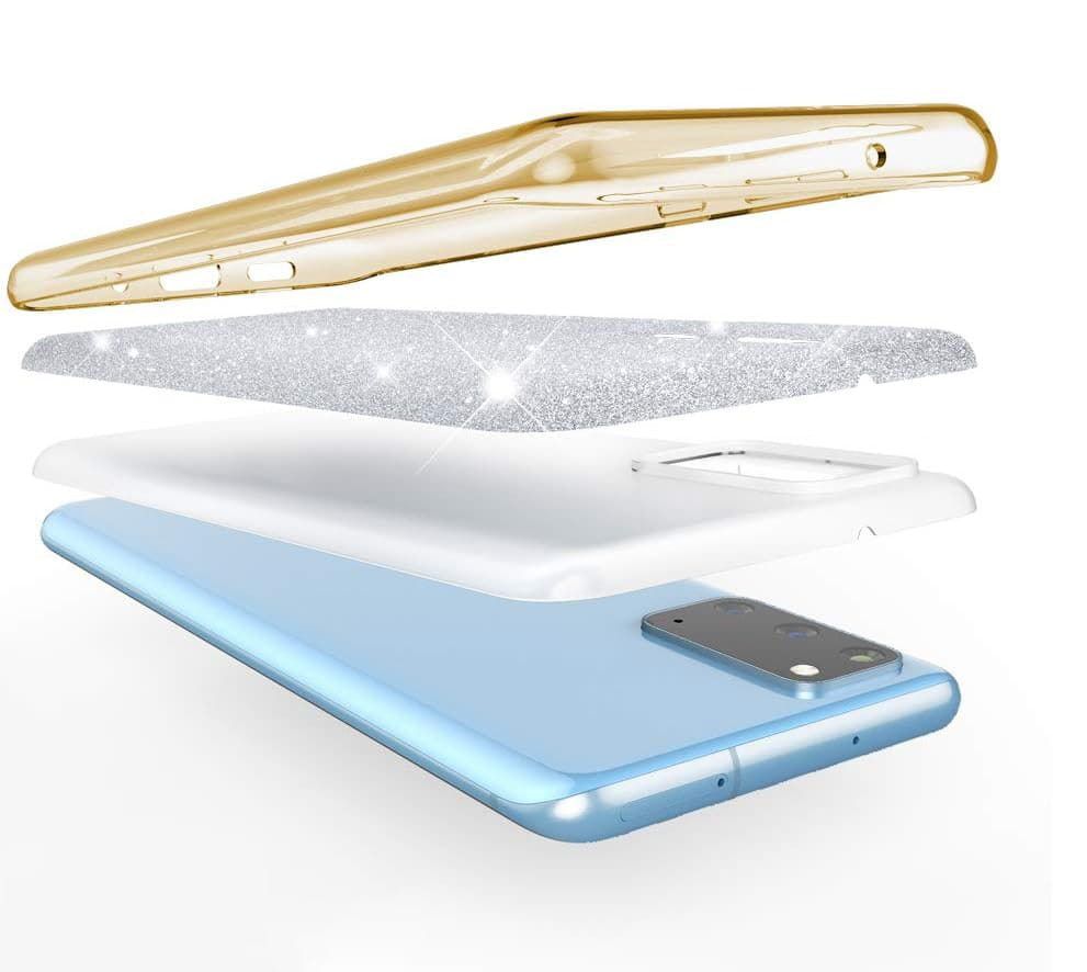 - Składa się z trzech warstw: silikonowej warstwy ochronnej, warstwy brokatowej i warstwy wzmacniającej (TPU + PC).