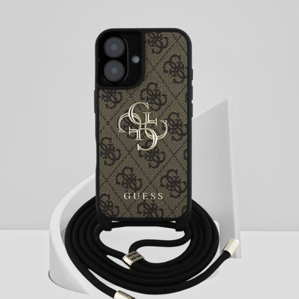 Etui Guess 4G Big Logo Cord Stap Crossbody do Apple iPhone 16 brązowy