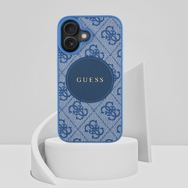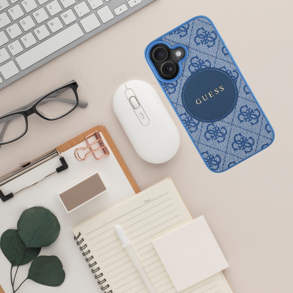Etui Guess 4G Circle Classic Logo MagSafe do Apple iPhone 16 niebieski