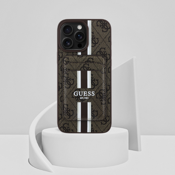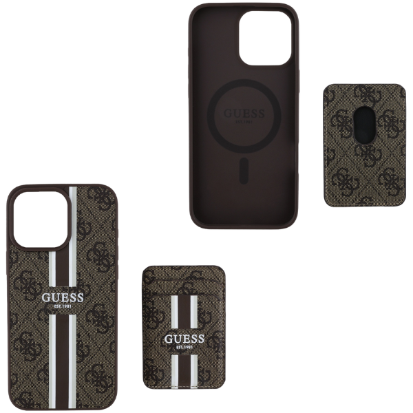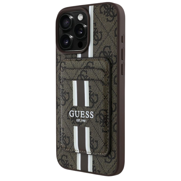 Etui Guess 4G Stripes z portfelem MagSafe do Apple iPhone 16 Pro Max brązowy