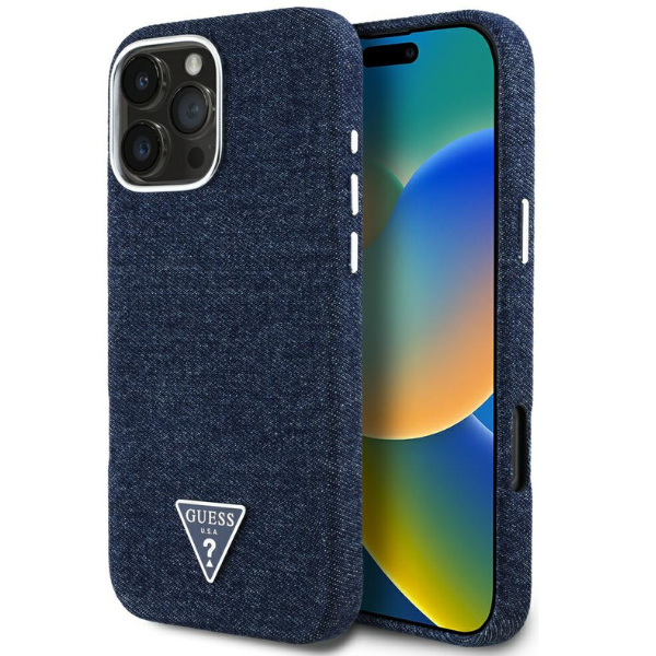 Etui Guess Denim Triangle Logo MagSafe do Apple iPhone 16 Pro Max niebieski