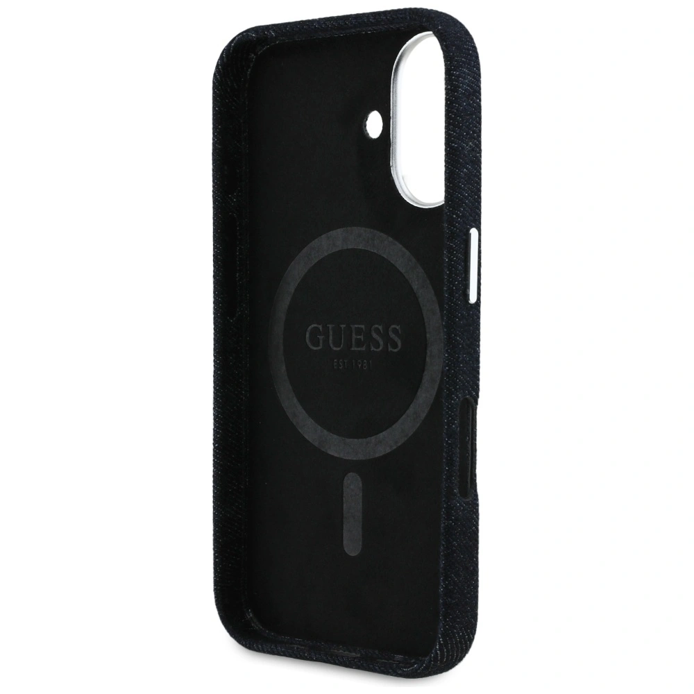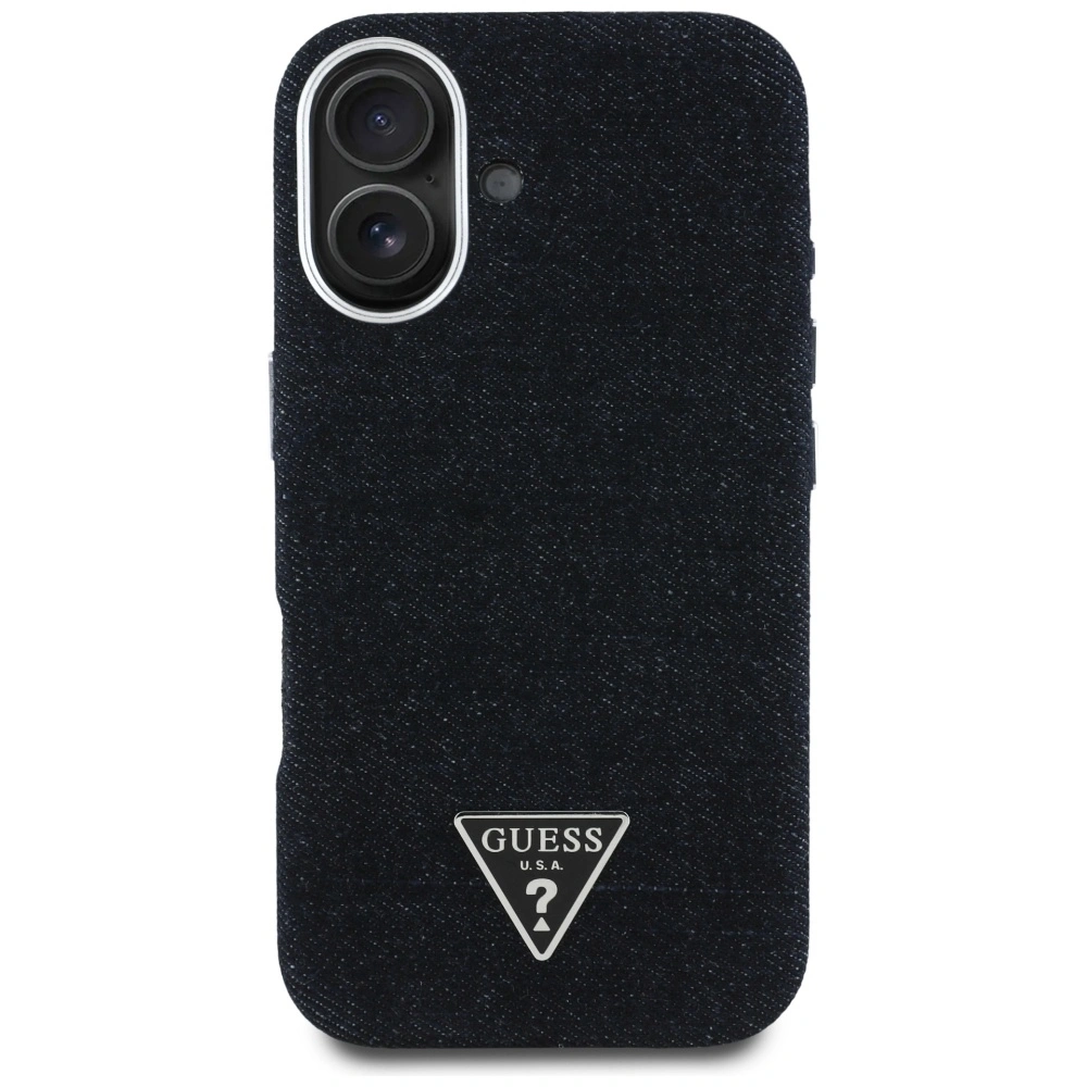Etui Guess Denim Triangle Logo MagSafe do Apple iPhone 16 czarny
