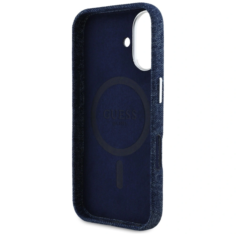 Etui Guess Denim Triangle Logo MagSafe do Apple iPhone 16 niebieski