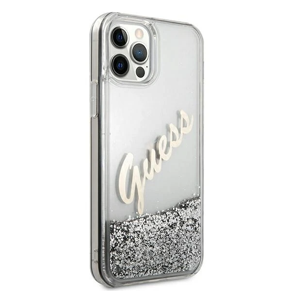 Etui Guess GUHCP12LGLVSSI Apple iPhone 12 Pro Max srebrny/silver hardcase Glitter Vintage Script