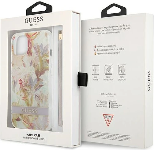 Etui Guess GUHCP13SHFLSU Apple iPhone 13 mini fioletowy/purple hardcase Flower Strap