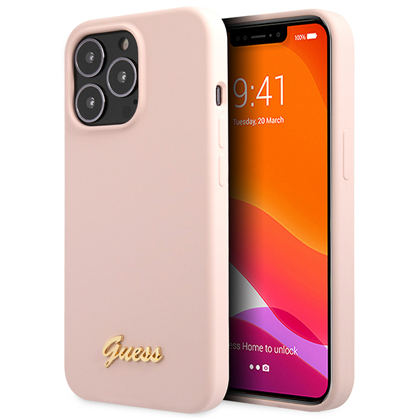 Etui Guess GUHCP13XLSLMGLP Apple iPhone 13 Pro Max jasnoróżowy/light pink hardcase Silicone Script Gold Logo