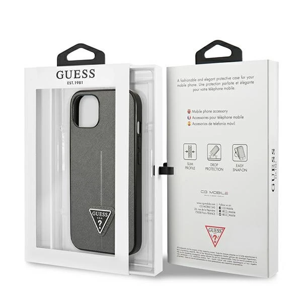 Etui Guess GUHCP14MPSATLG Apple iPhone 14 Plus / 15 Plus srebrny/silver hardcase SaffianoTriangle Logo