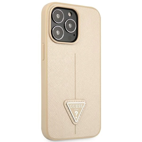 Etui Guess GUHCP14XPSATLE Apple iPhone 14 Pro Max beżowy/beige hardcase SaffianoTriangle Logo