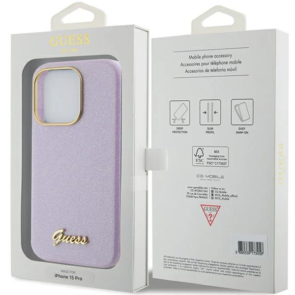 Etui Guess GUHCP15LPGMCSL Apple iPhone 15 Pro hardcase Glitter Glossy Script liliowy/lilac