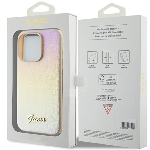 Etui Guess GUHCP15LPSAIRSD Apple iPhone 15 Pro hardcase Saffiano Iridescent Script złoty/gold