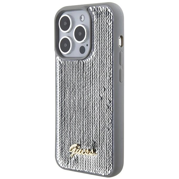 Etui Guess GUHCP15LPSFDGSS Apple iPhone 15 Pro hardcase Sequin Script Metal srebrny/silver