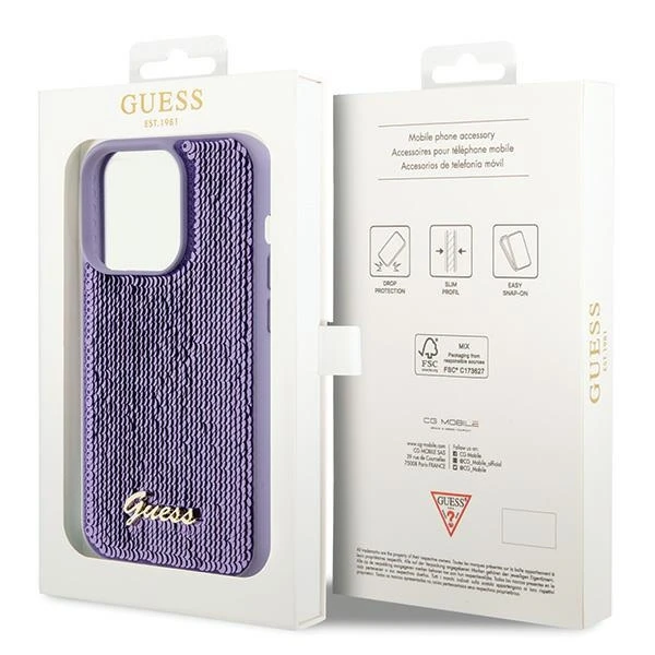 Etui Guess GUHCP15LPSFDGSU Apple iPhone 15 Pro hardcase Sequin Script Metal fioletowy/purple