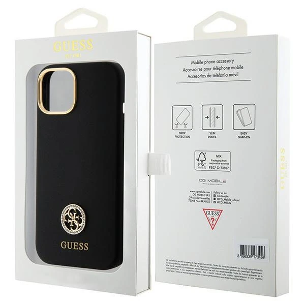 Etui Guess GUHCP15SM4DGPK Apple iPhone 15 hardcase Silicone Logo Strass 4G czarny/black