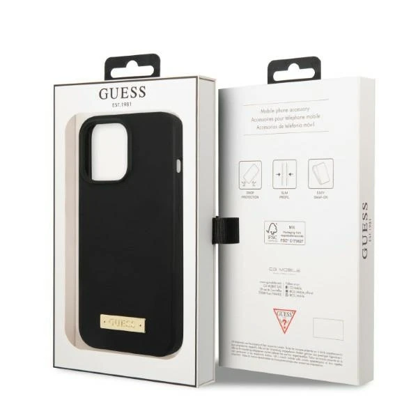 Etui Guess GUHMP13LSPLK Apple iPhone 13 Pro czarny/black hard case Silicone Logo Plate MagSafe