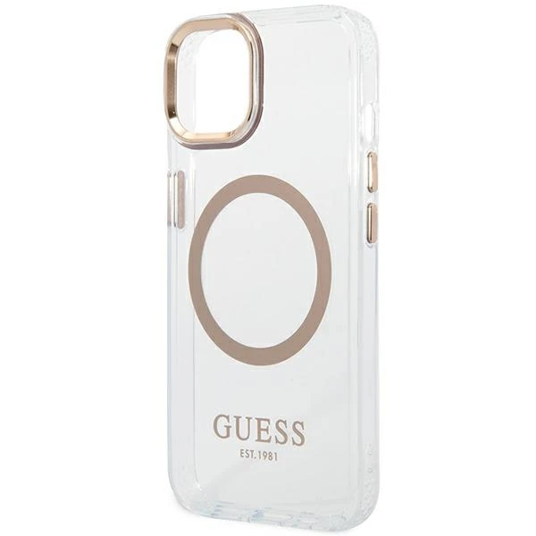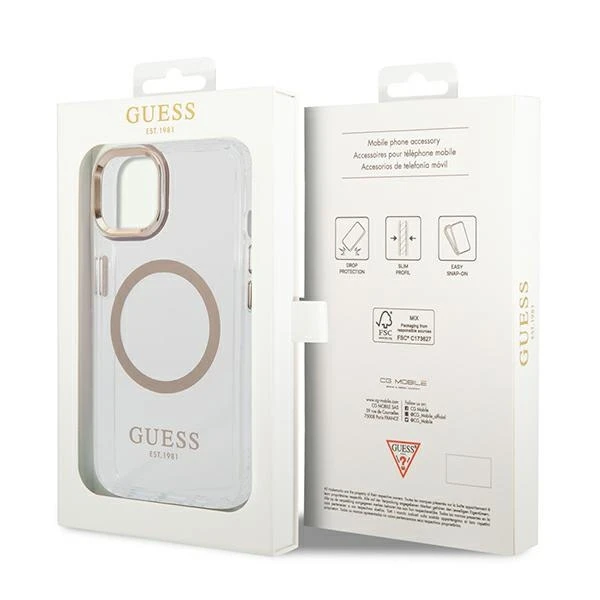 Etui Guess GUHMP14MHTRMD Apple iPhone 14 Plus / 15 Plus złoty/gold hard case Metal Outline Magsafe