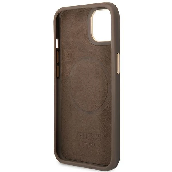 Etui Guess GUHMP14MU4GPRW Apple iPhone 14 Plus / 15 Plus brązowy/brown hard case 4G Logo Plate MagSafe