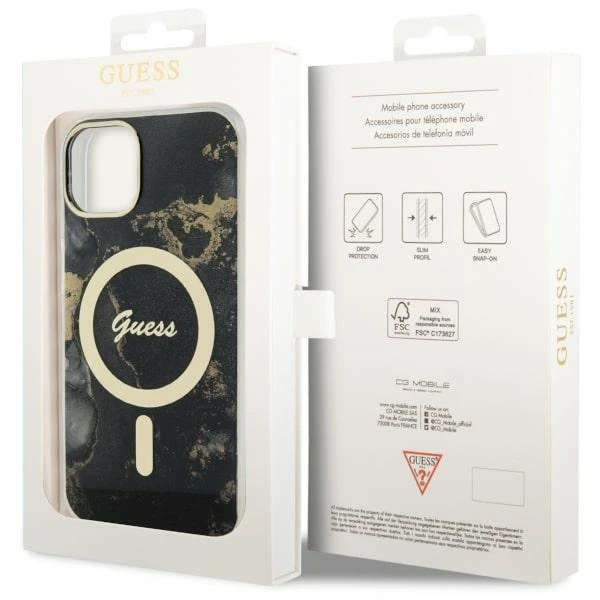 Etui Guess GUHMP14SHTMRSK Apple iPhone 14 czarny/black hardcase Golden Marble MagSafe