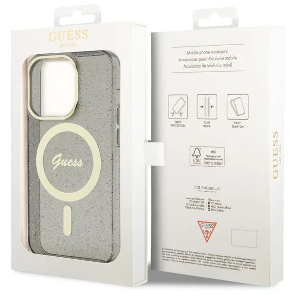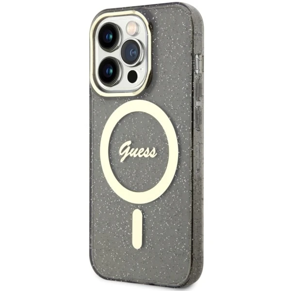 Etui Guess GUHMP14XHCMCGK Apple iPhone 14 Pro Max czarny/black hardcase Glitter Gold MagSafe