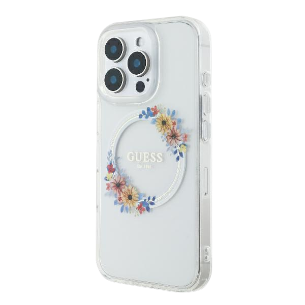 Etui Guess GUHMP16LHFWFCT Apple iPhone 16 Pro hardcase IML Flowers Wreath MagSafe przeźroczysty
