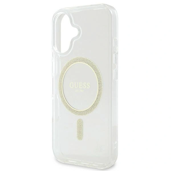 Etui Guess GUHMP16SHFGERET Apple iPhone 16 hardcase IML Glitter Circle MagSafe przeźroczysty/transparent