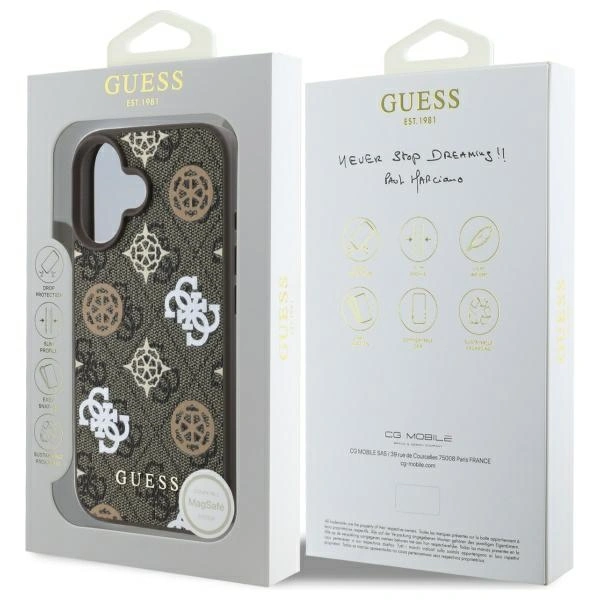 Etui Guess GUHMP16SP4PWPW Apple iPhone 16 hardcase Peony On 4G Background MagSafe brązowy/brown