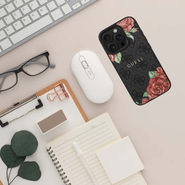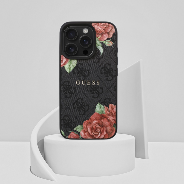 Powierzchnia etui zdobiona jest charakterystycznym wzorem 4G oraz subtelnym motywem kwiatów, który dodaje stylowego i kobiecego charakteru. Luksusowym akcentem jest złote logo Guess umieszczone na etui, które podkreśla elegancję i wysoką jakość produktu.