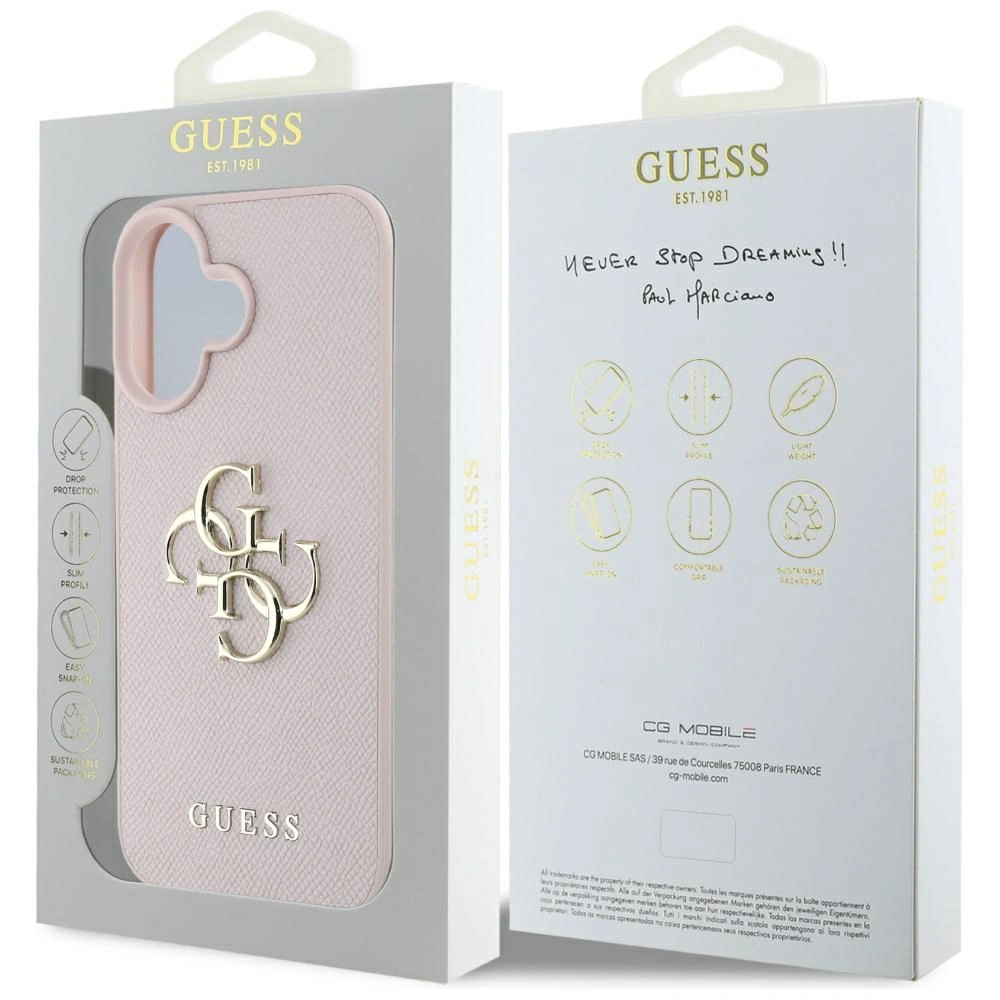 Etui Guess Grained Big 4G Logo Small Classic Logo do Apple iPhone 16 różowy