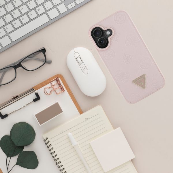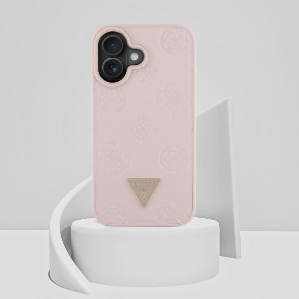 Etui Guess Grained Hot Stamp Peony Triangle Logo MagSafe do Apple iPhone 16 różowy