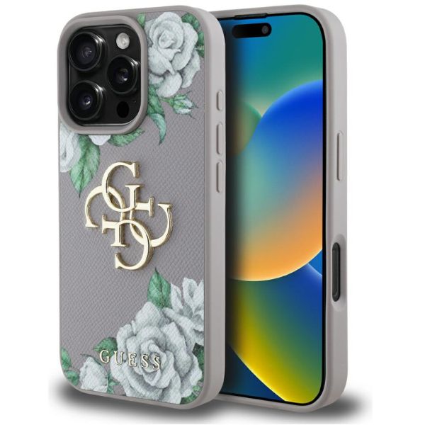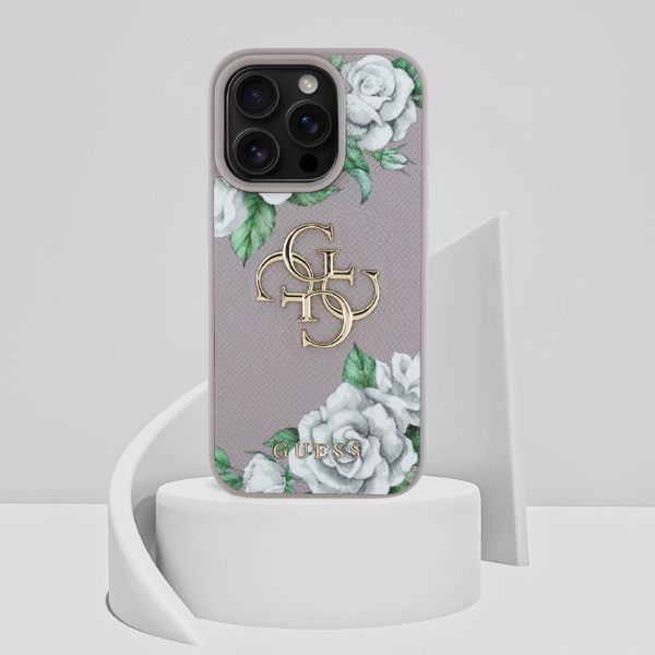 Etui Guess Grained Roses Big 4G logo do Apple iPhone 16 Pro Max fioletowy